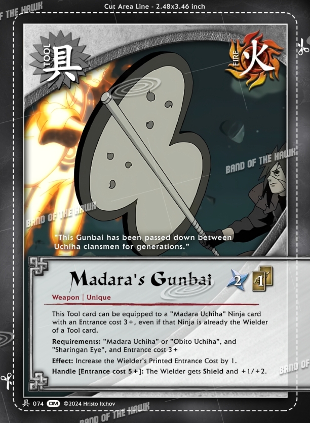 t74 - Madara's Gunbai Tool card from our Obito & Madara card set for Naruto CCG.