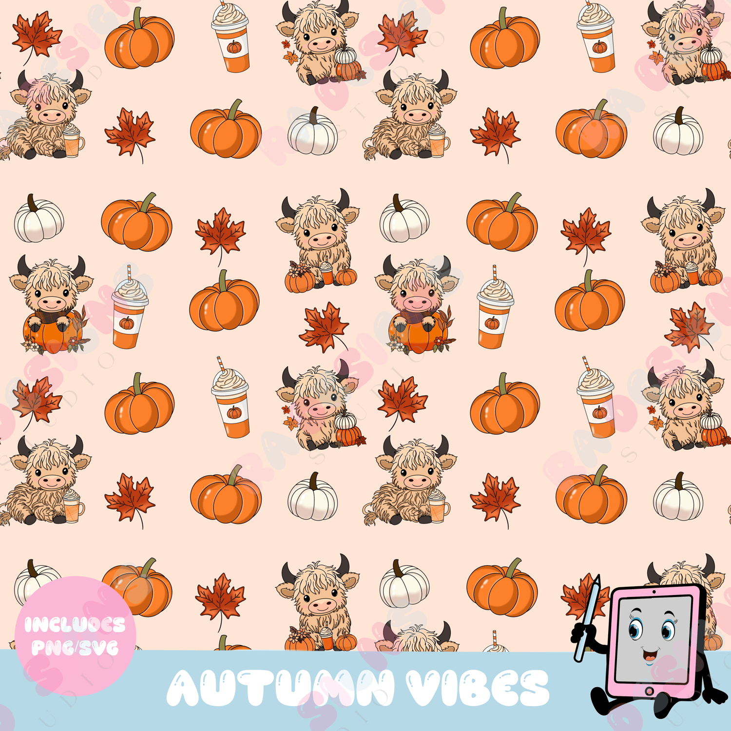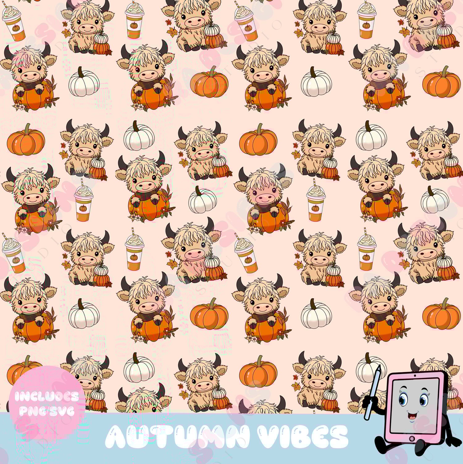 Instant download of our autumn cow vibes pattern includes 2 pattern designs in png/svg