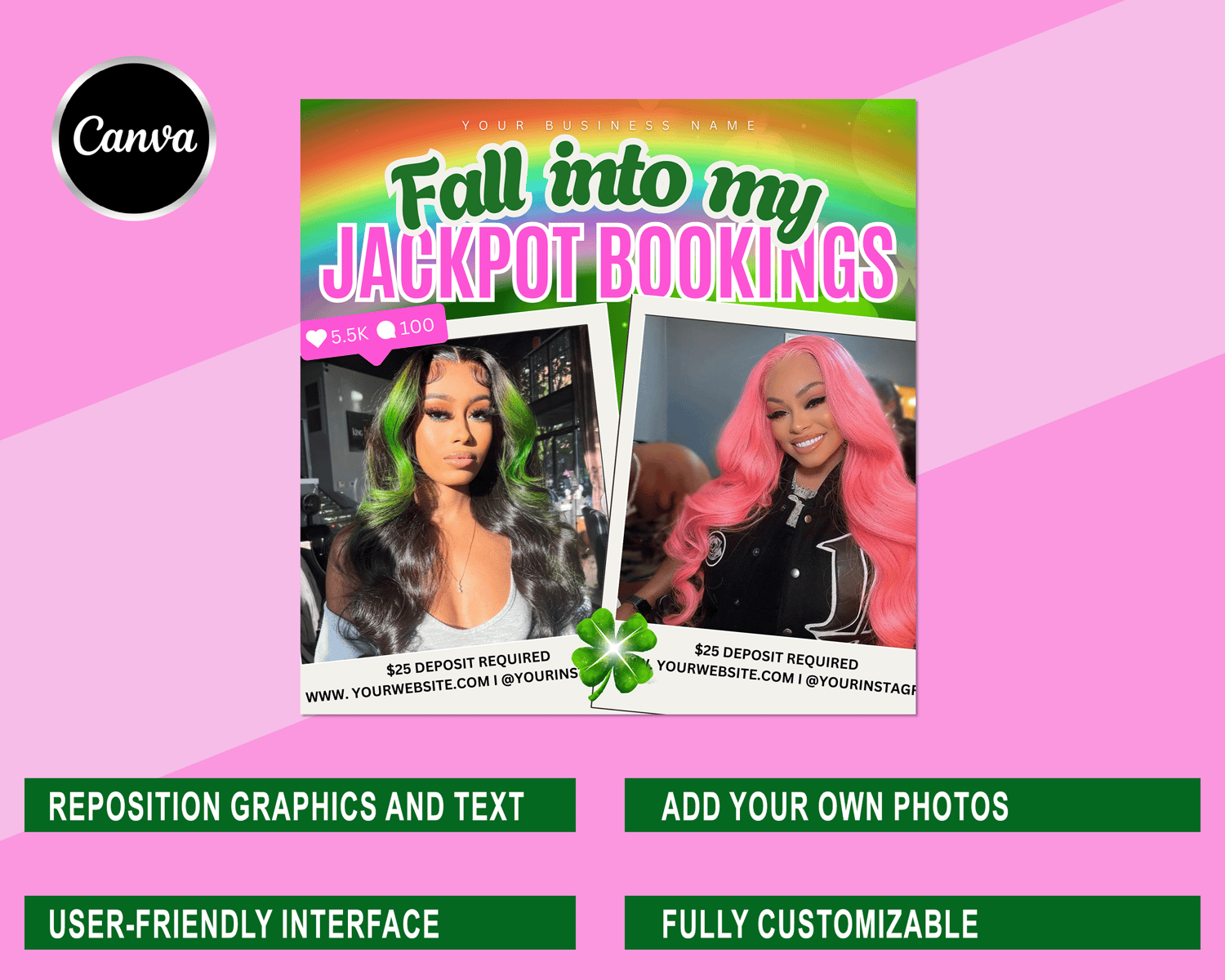 March Booking Flyer, March Appointment Flyer, Lucky Hair Flyer, March Instagram posts Hair Stylist templates