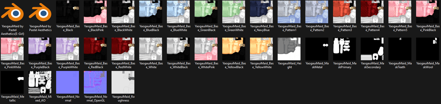 35 Textures (24 Base Colours, Decals, Height, Metallic, MixedAO, Normals, Roughness, Masks)