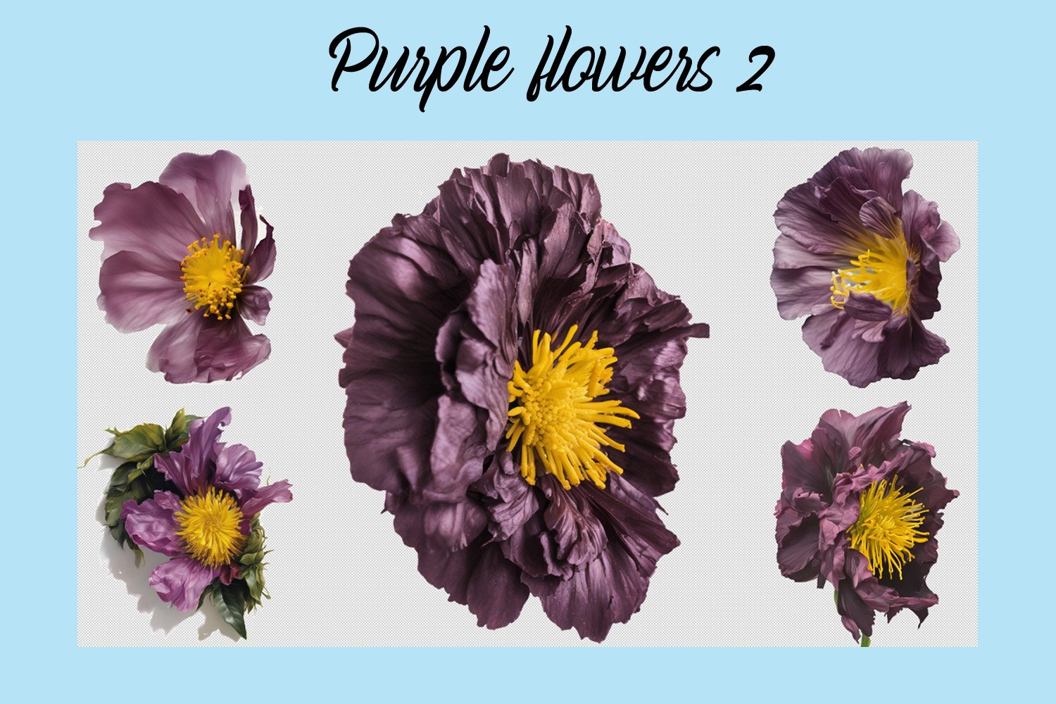 Purple flowers for digital scrapbooking, sublimation, printables and other crafts