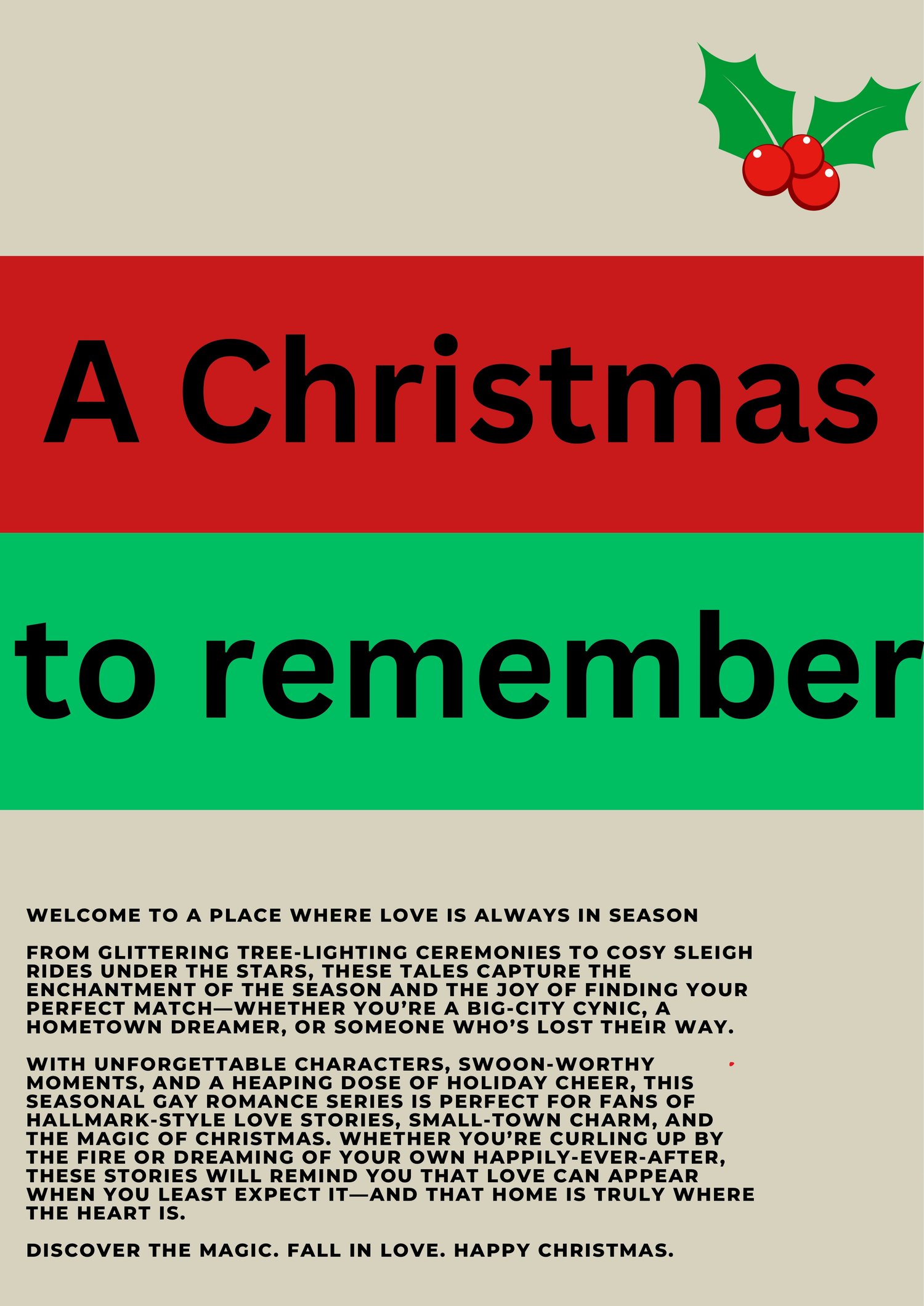 With unforgettable characters, swoon-worthy moments, and a heaping dose of holiday cheer, this seasonal gay romance series is perfect for fans of Hallmark-style love stories, small-town charm, and the magic of Christmas. Whether you’re curling up by the fire or dreaming of your own happily-ever-after, these stories will remind you that love can appear when you least expect it—and that home is truly where the heart is.