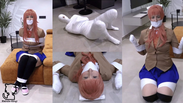 Video includes: Tapegag, tape mummification, tape tied, boxtie, overknee socks, shoes, sockedfeet, frogtie, taped mittens, chickentie, wrap around tapegag, heavy taped up, struggling, moaning, gagtalk