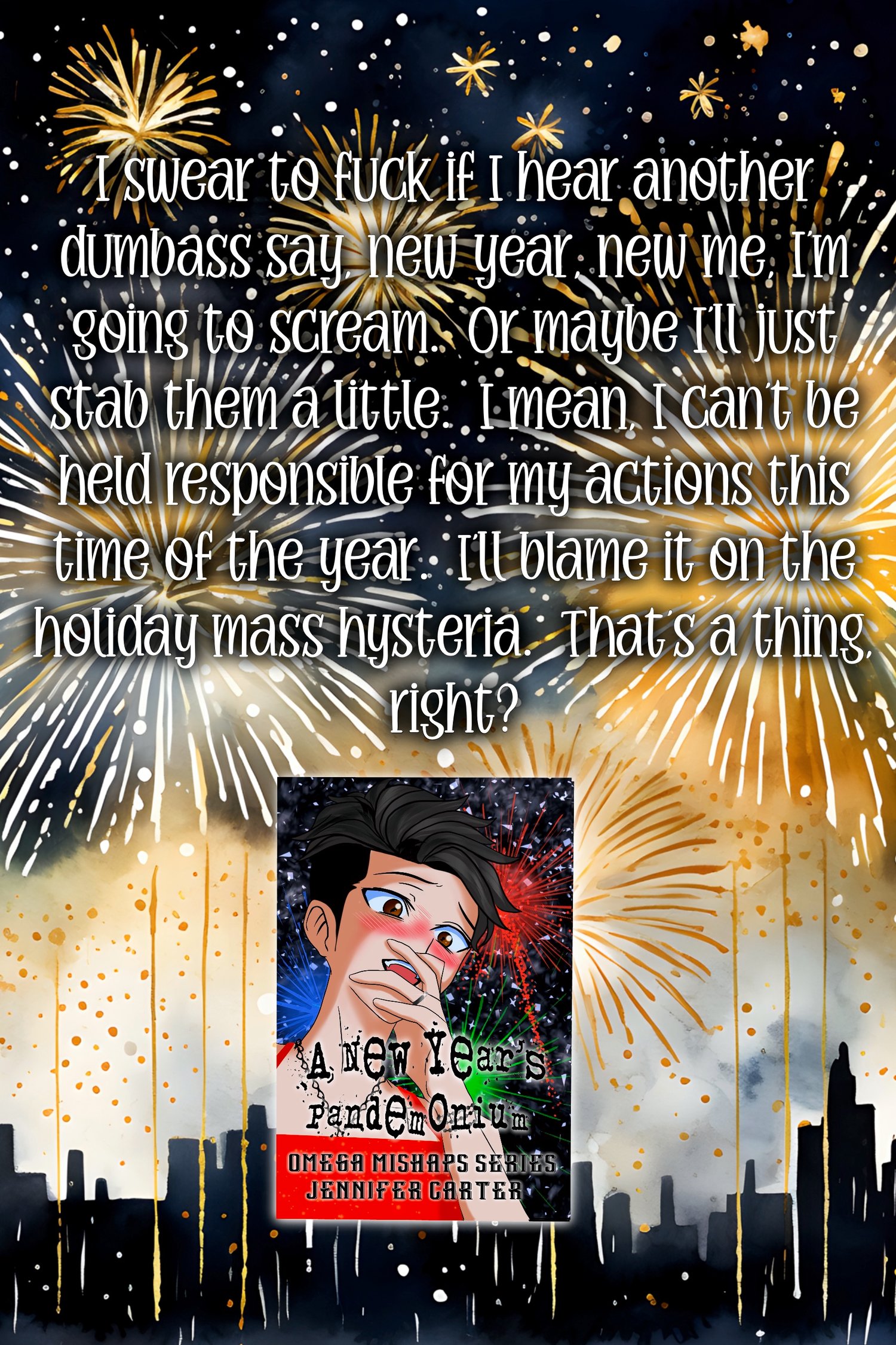 Preorder A New Year's Pandemonium ebook - Omega Mishaps series - holiday novella, MM Omegaverse, accidental marriage, grumpy sunshine