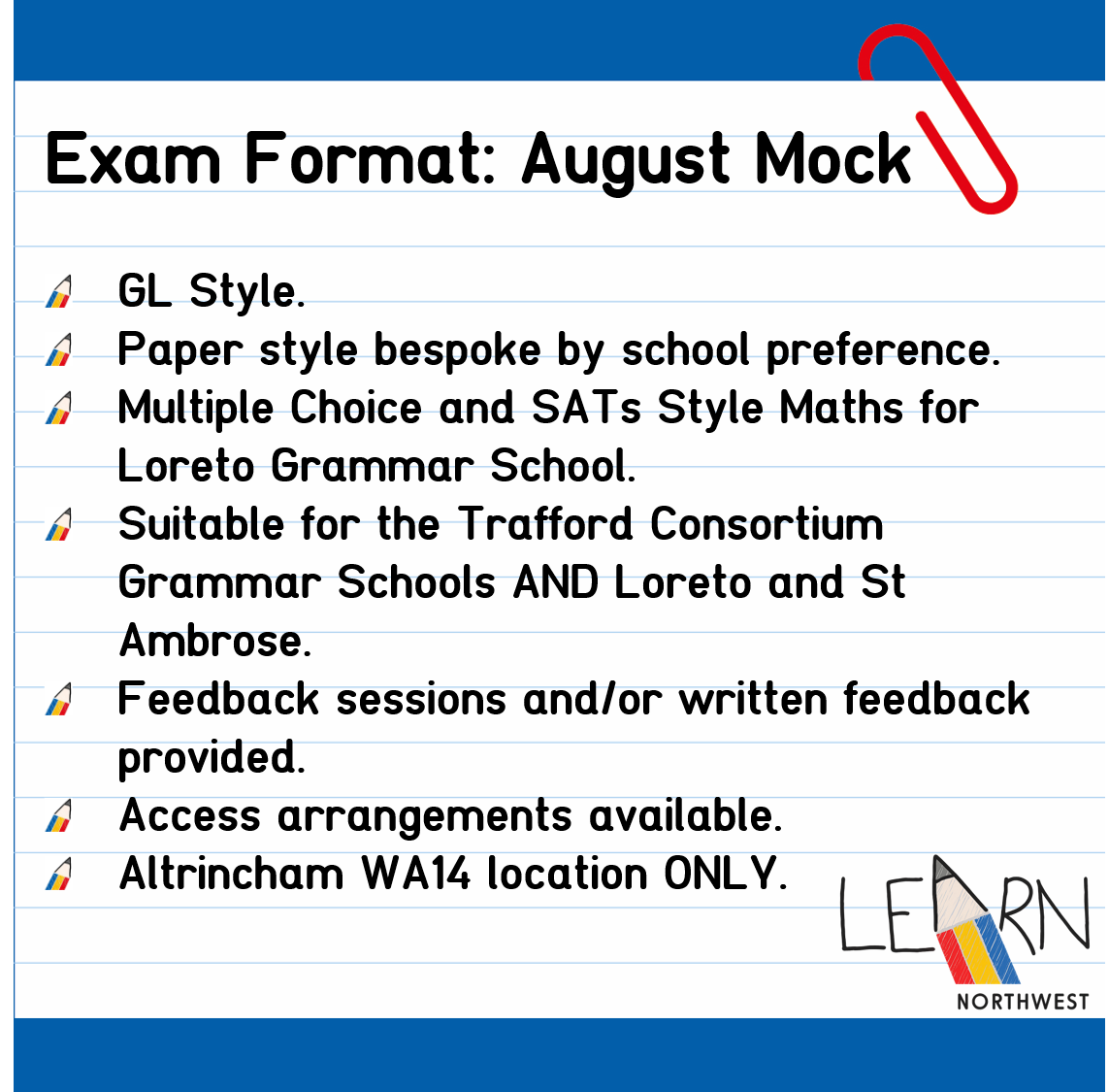 Please note that this is a physical, in-person mock exam taking place at Learn North West, Altrincham on the specific date and time you select when booking.