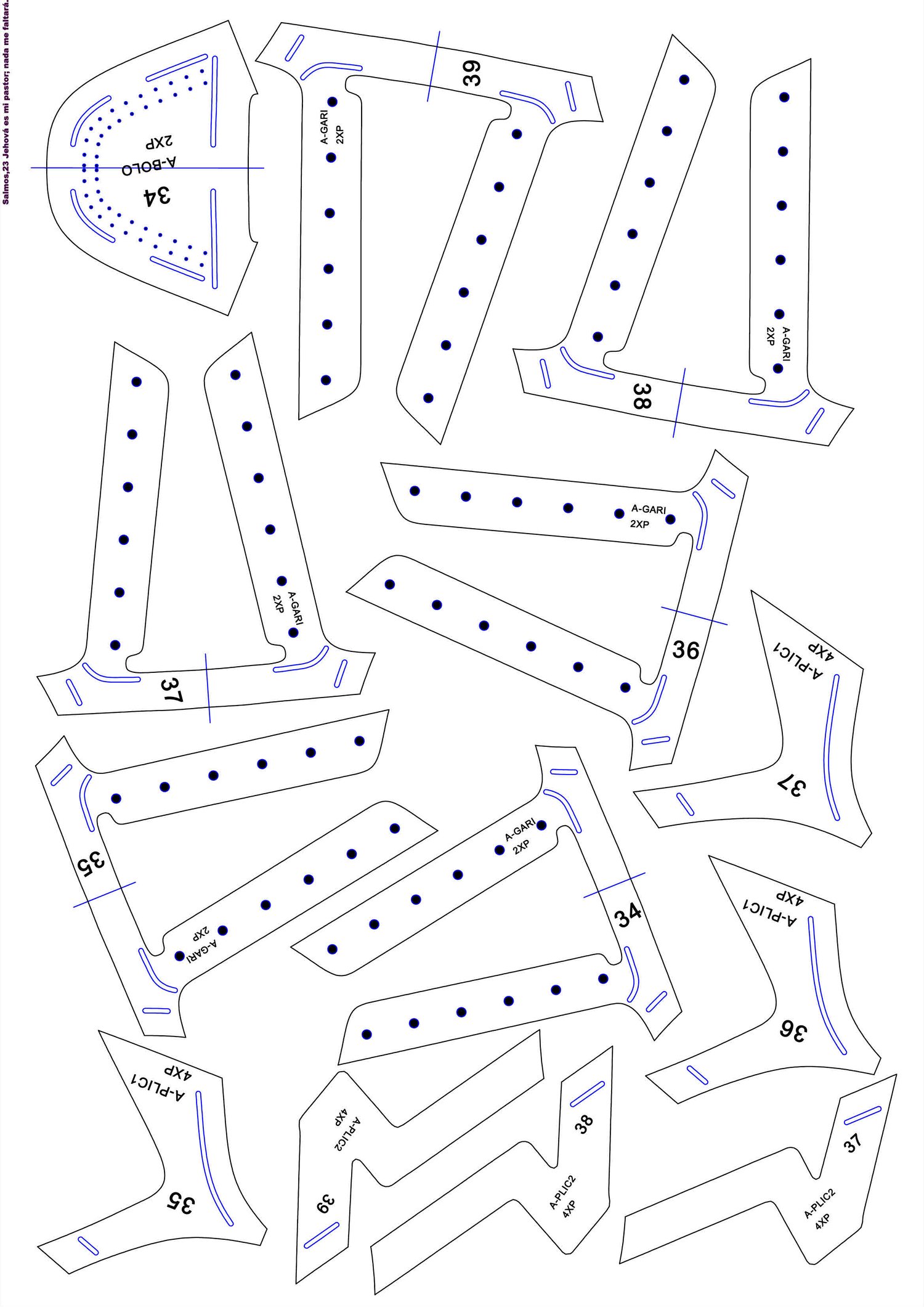 patrones en PDF hoja A3 Y A4 conprimido WinRar, serie del 34 AL 39.