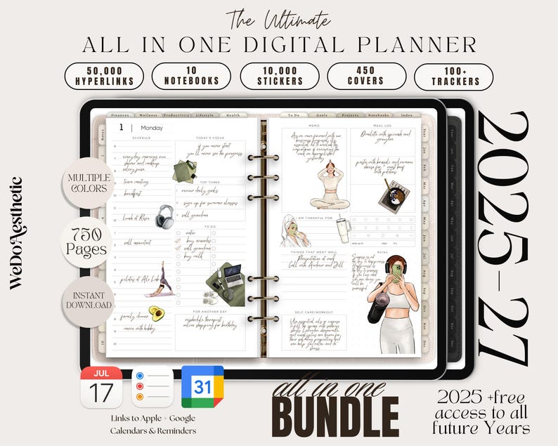 2025,2027 All-in-One Dated Digital Planner, Budget, Fitness, Notebook, Daily Planner, Goodnotes Planner, iPad Planner, Notability Planner