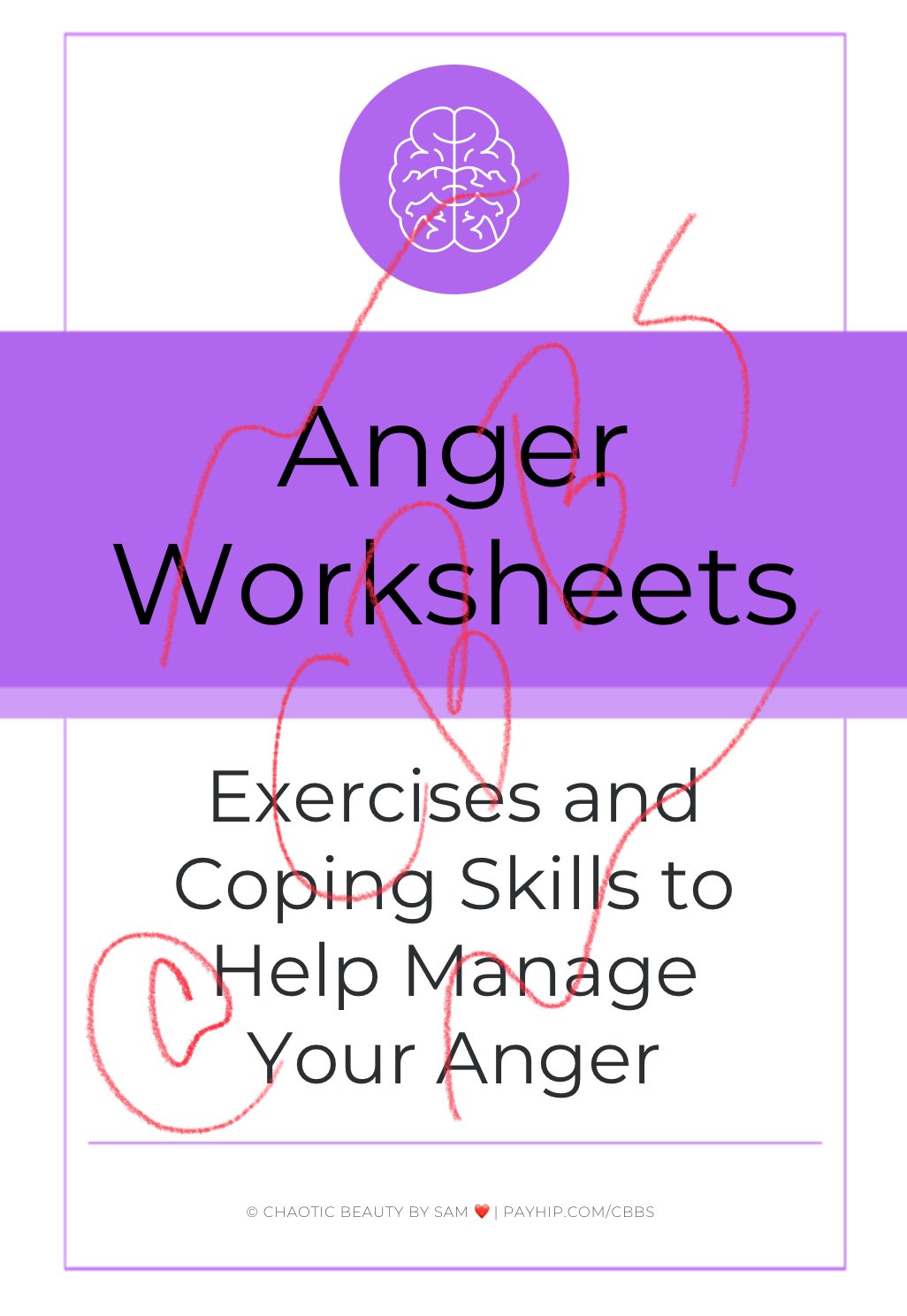 "Anger Worksheets" is a comprehensive set a downloadable PDF resource designed to help individuals better understand and manage their anger. This packet includes a variety of engaging and interactive activities that are both educational and practical, featuring exercises that help the reader identify triggers, practice effective communication skills, explore coping mechanisms, and cultivate emotional regulation strategies. Each worksheet is crafted with care and attention to detail, and is designed to support users in their journey towards greater emotional well-being and self-awareness. Whether you're a mental health professional seeking useful resources for your clients, or an individual looking to take steps towards managing your anger more effectively, "Anger Worksheets" can be a helpful and insightful tool.