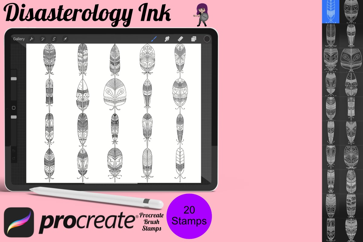 Procreate stamps save time when drawing, saving the effort of having to recreate the same thing for multiple designs and projects, save time on your design by purchasing these feather brush stamps so you can utilise that time on creating more beautiful art.