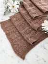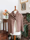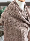 And then I got the idea to design this deliciously massive wrap. It is overbrimming in every sense of the word, full of textures and eyelets and cables. I wanted this thing to be a sensory feast so that, whenever someone picked it up to work on it or wear it, they would feel wrapped up in abundance. Never fear, though—as usual, this wrap has a repeat that’s only eight rows long and uses lots of repetition and symmetry to make it easily memorized.