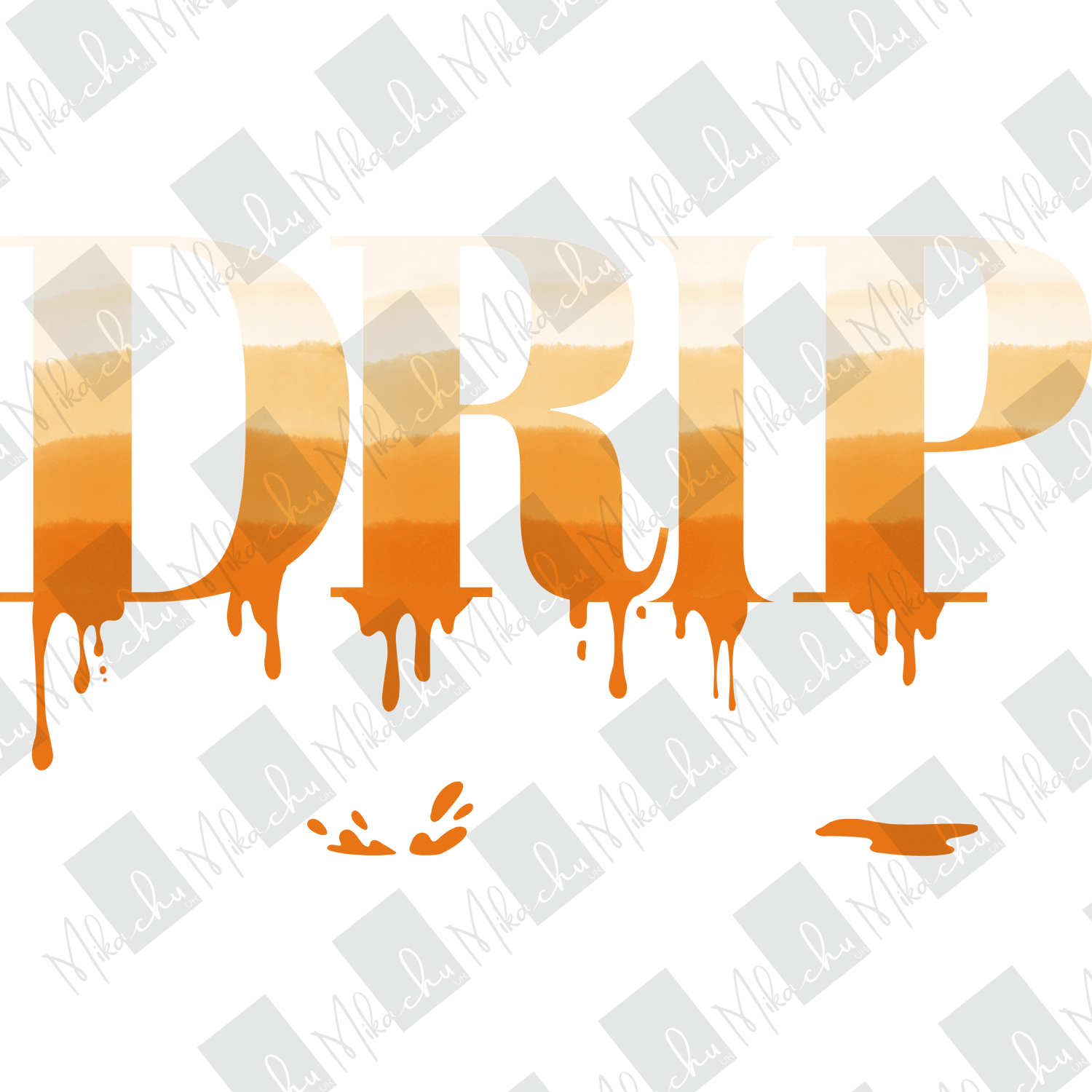 This image displays the word "DRIP" in bold, uppercase letters with a gradient that shifts from white at the top to deep orange at the bottom. The design includes dripping effects below each letter, creating a fluid, paint-like appearance. The warm color palette and dripping style give it an autumnal or desert-inspired aesthetic, making it well-suited for seasonal designs, branding, or social media content that seeks a vibrant and dynamic look.