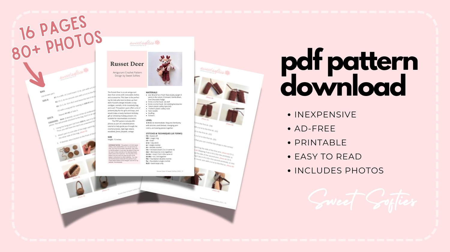 Pattern info page: https://www.sweetsofties.com/2025/12/russet-deer.html