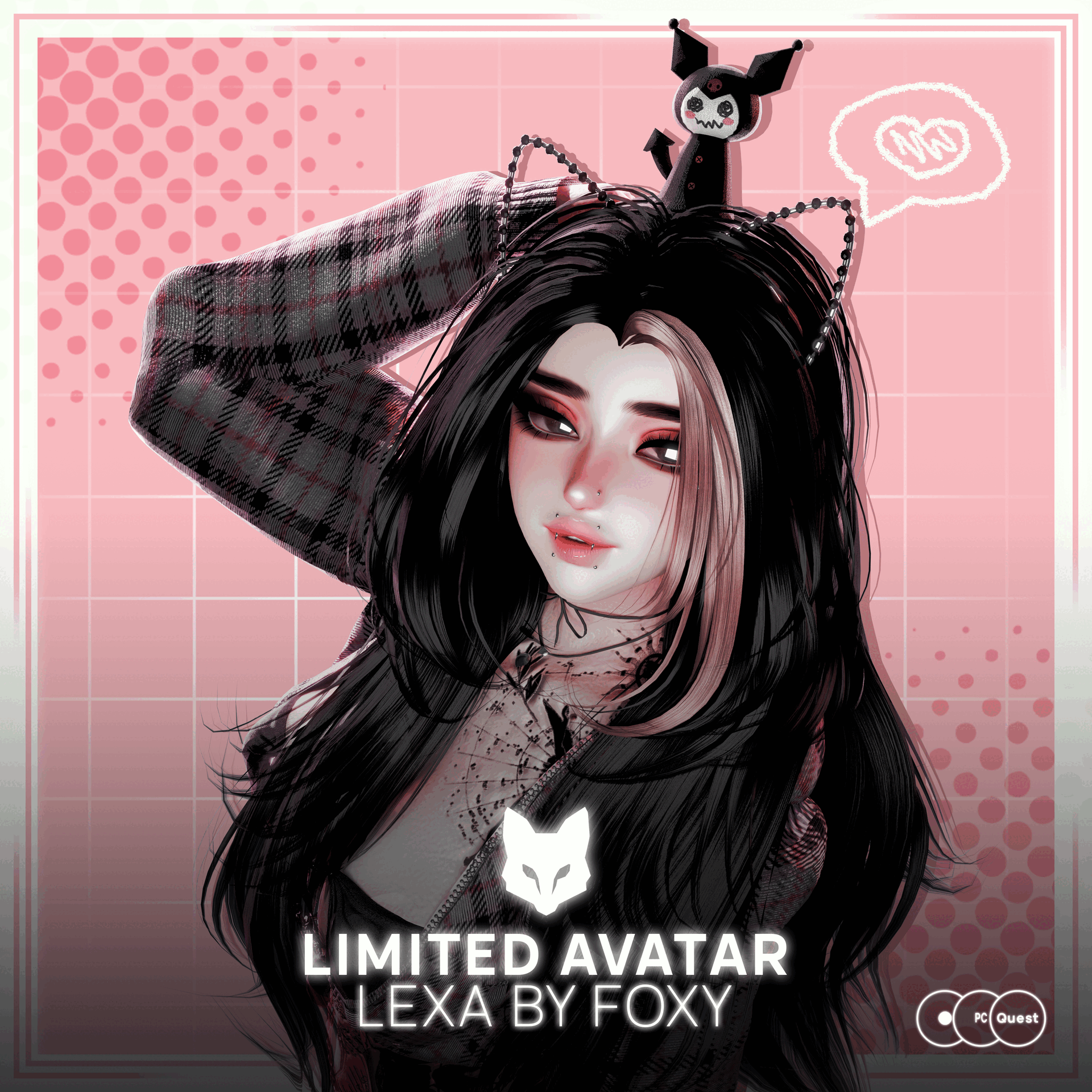 BODY (zinpia), HEAD, LASHES, MATCAPS (sivka.), HAIR, WINGS, HORNS, (nessyy.), HAIR TEX (Cicieaaa#7777), EYES TEX (Fair), ICONS (maddiiee), AV3 CREATOR, BASIC DYNAMICS (Rafa#0069), GOGOLOCO (franada), SPS CONFIGURATOR (Wholesome), HEART PARTICLE (bunky#0001), CLAWS, CHOKER (diraccoonr), SWEET DEMON SET, BODYSUIT (Cringecord), WOMB TATTOO (smol_uni), PASTIES (r3v0.), NIPPLE CHAINS (galaxy.creations), NAILS, RINGS (spice.spice), EARRINGS (dvl), PARTICLE TRAIN (EricWang), EARS (krinuts)