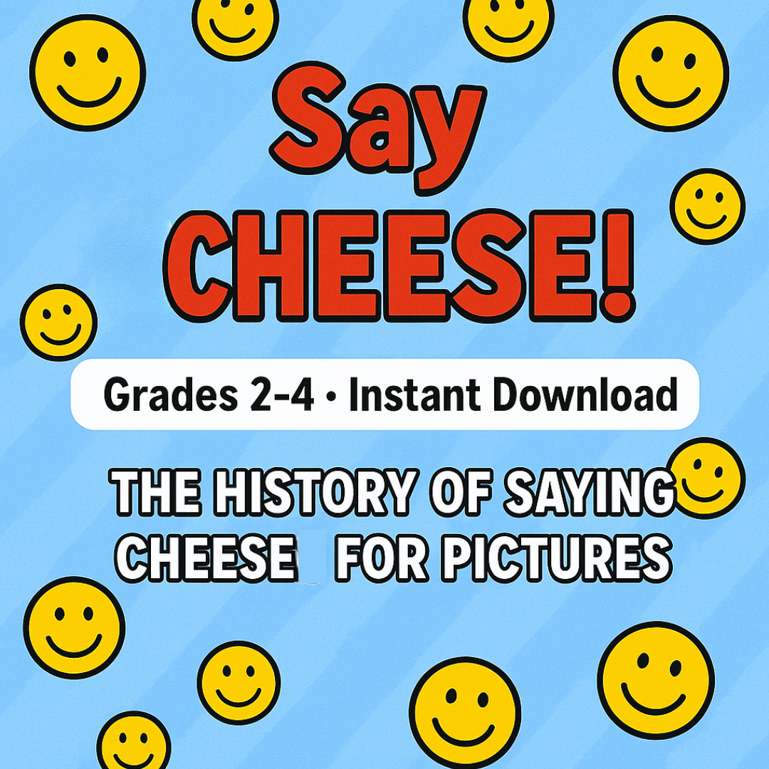 Bring smiles into your classroom—literally! This engaging, kid-friendly printable explores the quirky tradition of saying “cheese” during photo-taking. Perfect for grades 2–4, this resource combines reading comprehension, cultural history, and a creative writing prompt to spark curiosity and classroom discussion.