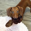 My little dachshund can decimate store-bought toys in an instant. She finds a vulnerability at a seam and rips out the stuffing in no time. When they’re not available, she’s happy to steal my yarn or a wool sock and run under the bed.