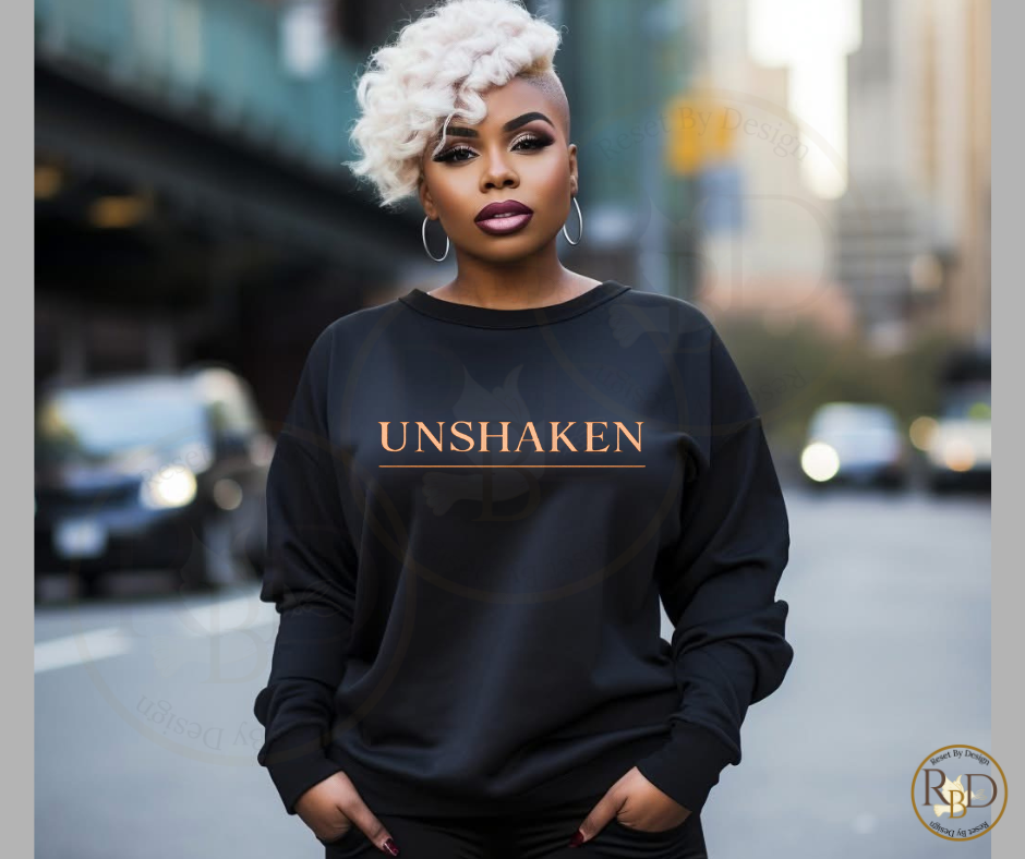 UNSHAKEN isn’t a trend or a slogan — it’s a declaration. Designed for women who’ve endured, evolved, and emerged stronger, this piece speaks without shouting.