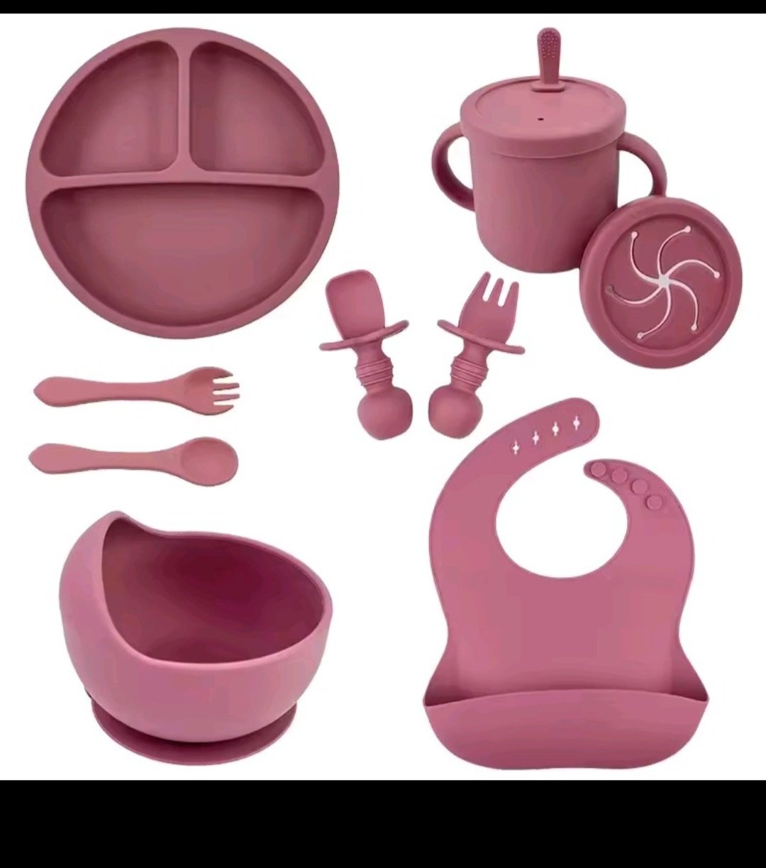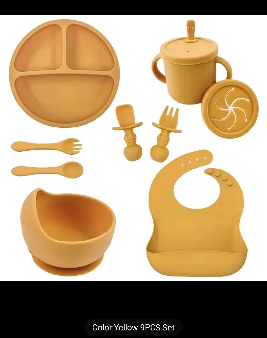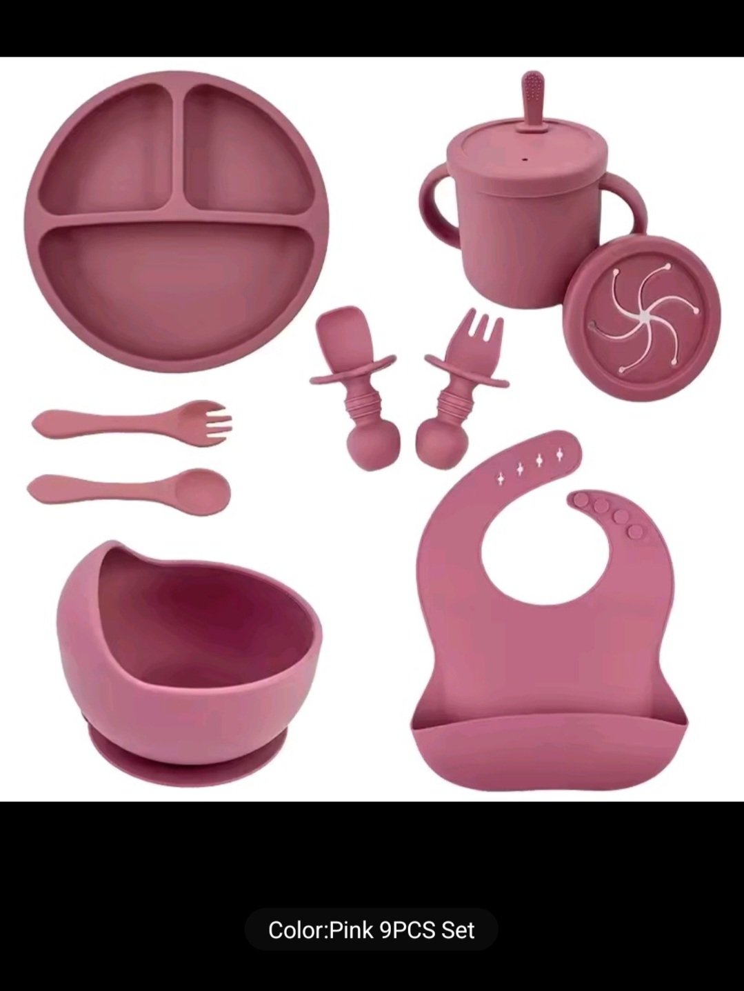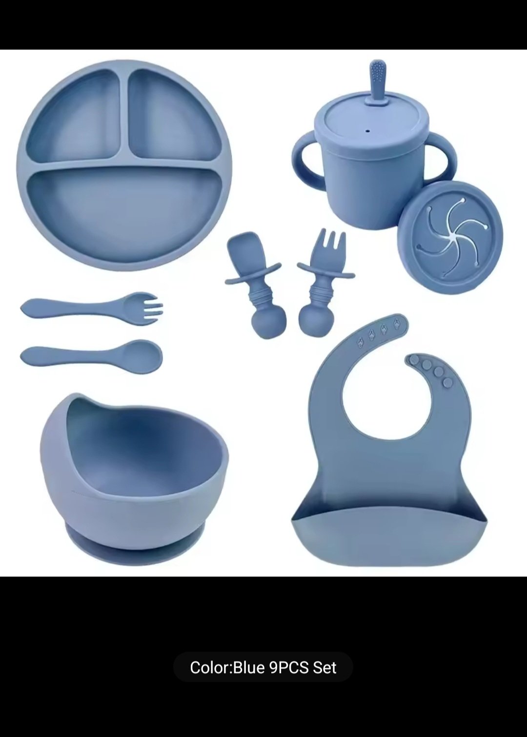 Silicone Baby Feeding set Sucker Bowl Dinning Plate Straw Cup Spoon Forks For Kids Baby Tableware