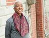 With this cowl, I wanted to celebrate the joy of a vibrant variegated skein by contrasting it against a deep black. The fine lines of black remind me of the intricate tracings in many stained-glass windows.