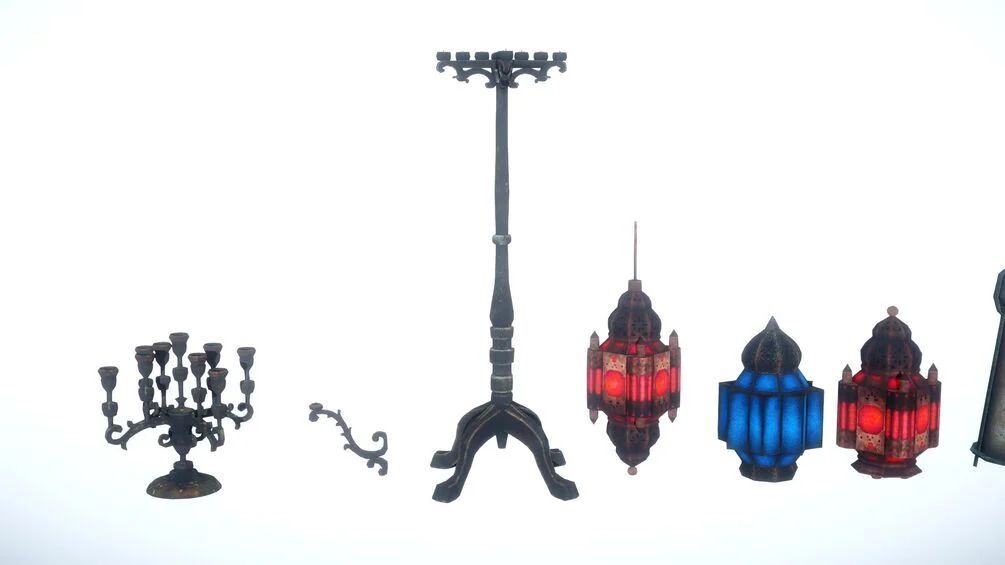 MOD for Studio New V2, based on The Witcher II game, are different types of Candelabra and Lanterns.