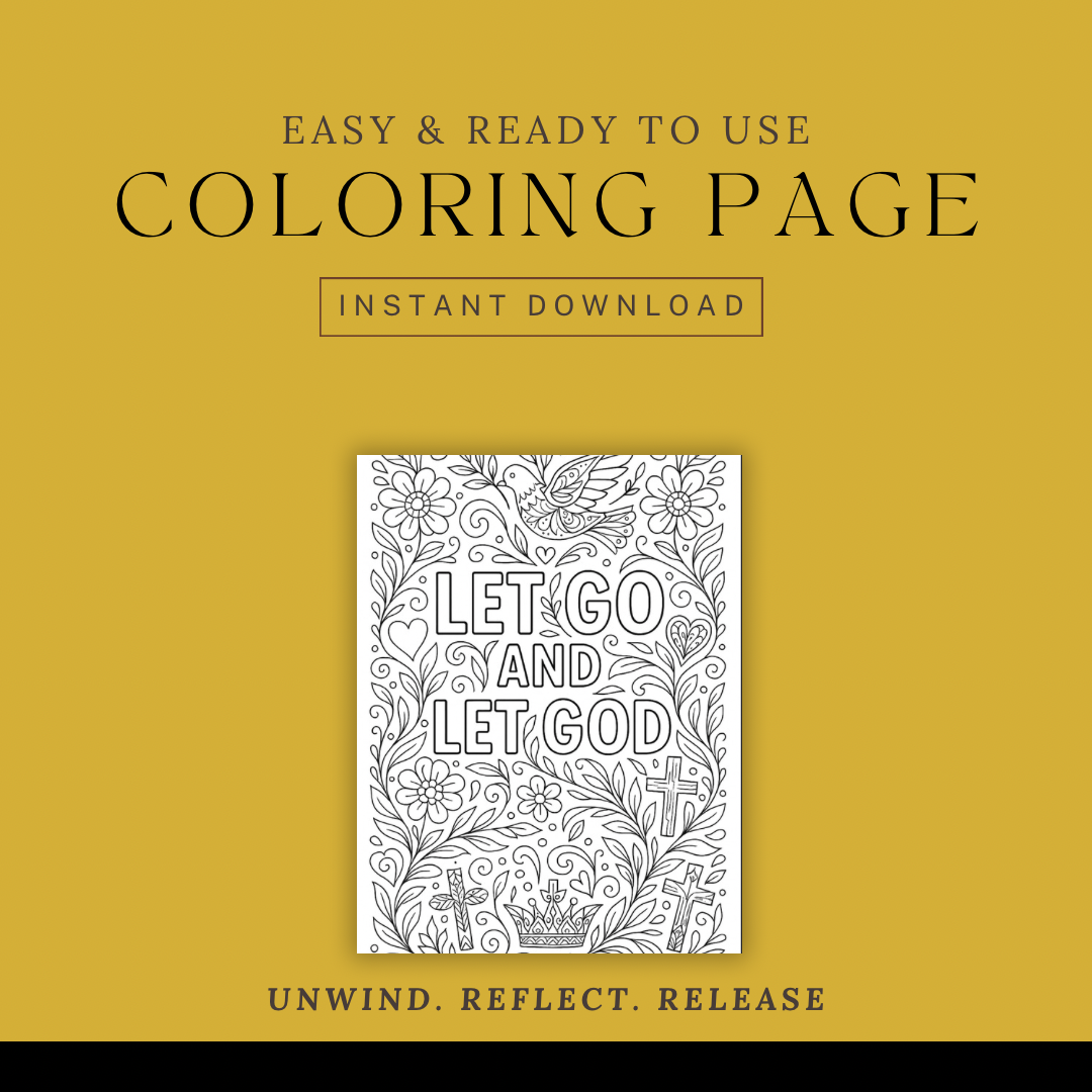 A peaceful, faith-centered coloring page designed to help you unwind, reflect, and release what you were never meant to carry. Perfect for prayer journaling, quiet time, Bible study, or relaxing creative moments.