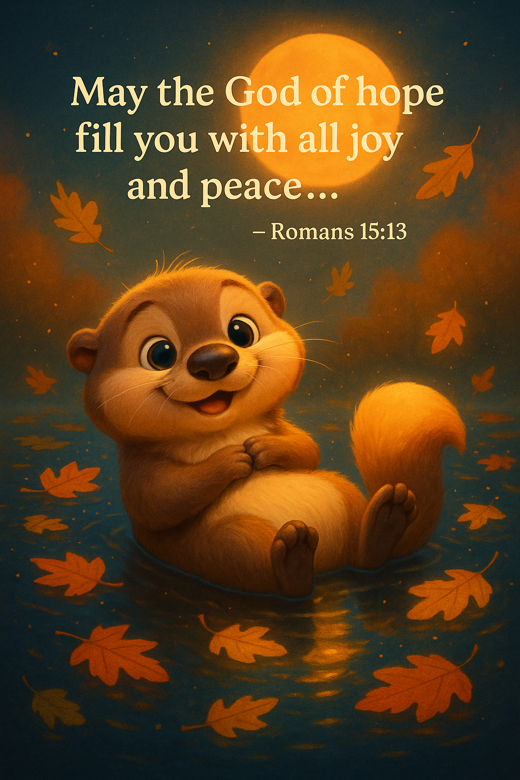 🦦🌕 Joyful Otter – Romans 15:13 Autumn Scripture Poster