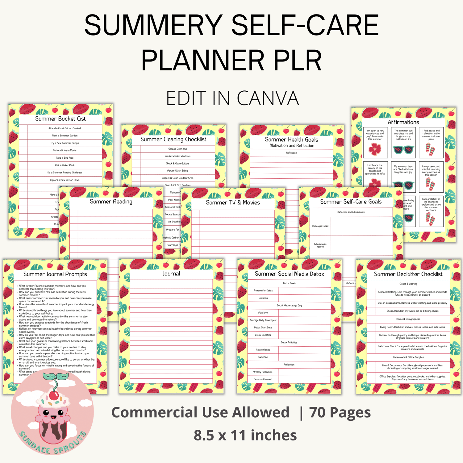 Summery Self-Care Planner PLR