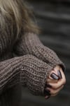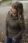 A simple and comfy turtle neck sweater in twisted ribbing. The sweater features overly long raglan sleeves and interesting placement of increases and decreases in the body to give the garment that special something.