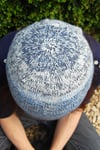 My blue sample is shown as a beanie in adult small on a head circ of 21in/53cm.