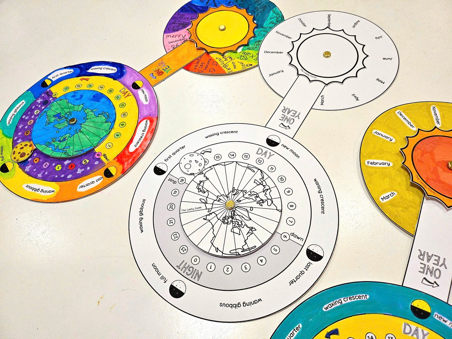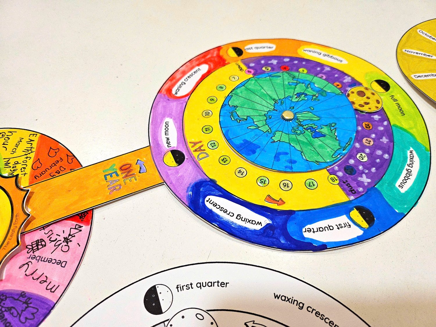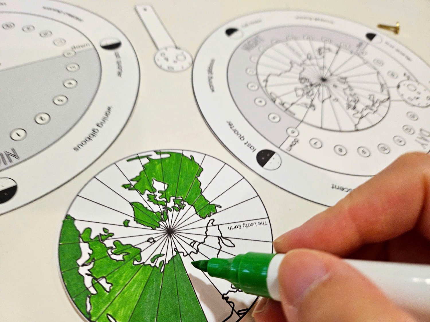 ✿ This printable model is designed to help students visualize and understand essential space science concepts such as day and night, moon phases, and time zones in a clear and interactive way.