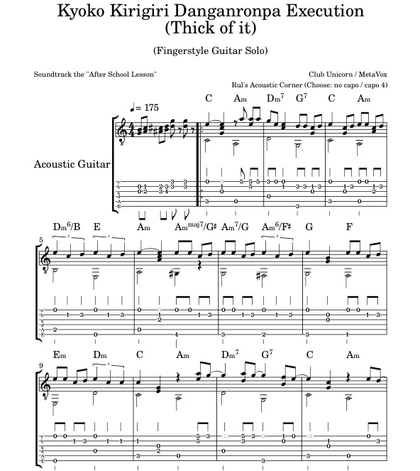 How To Play Kyoko Kirigiri Danganronpa Execution (Thick of it) | Fingerstyle Guitar Solo Tabs Chords Notes PDF Audio MP3
