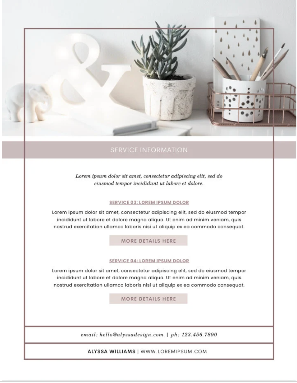 As a service-based business owner, your services and pricing guide will be a very important part of your business. It outlines the range of services offered and provides transparency on pricing, ensuring a smooth and efficient working relationship with potential clients. This amazing template will save you a lot of time when creating your own professional services & pricing guide.