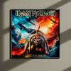 In this artwork, we inspired on the original single. Eddie is a WWII pilot in the Battle of Britain.