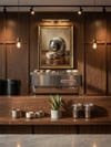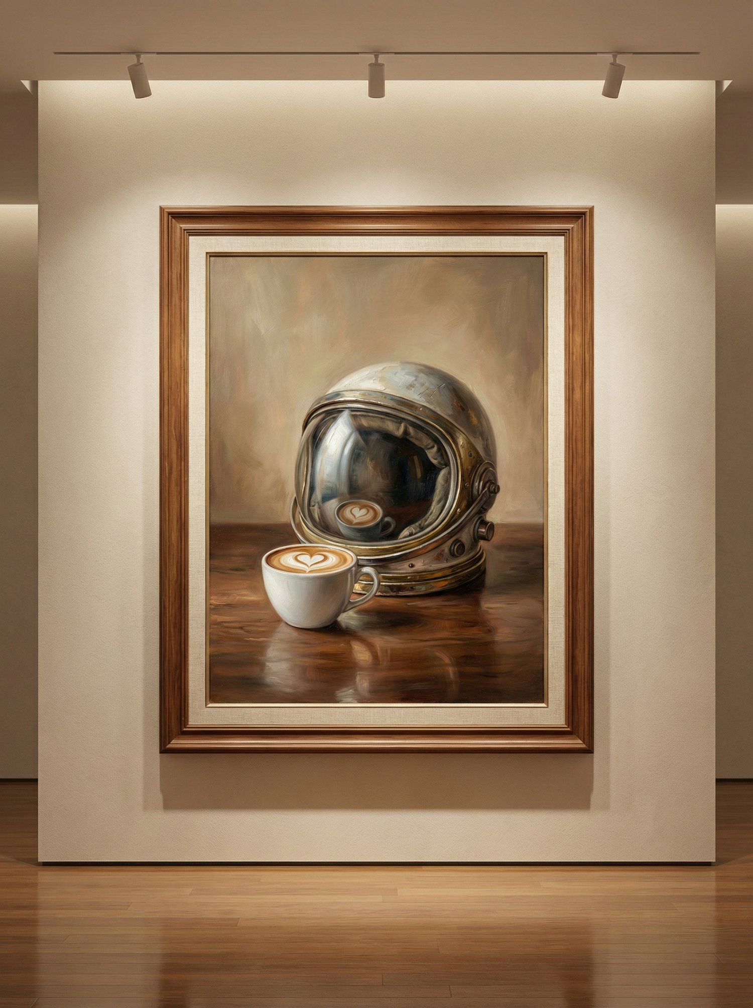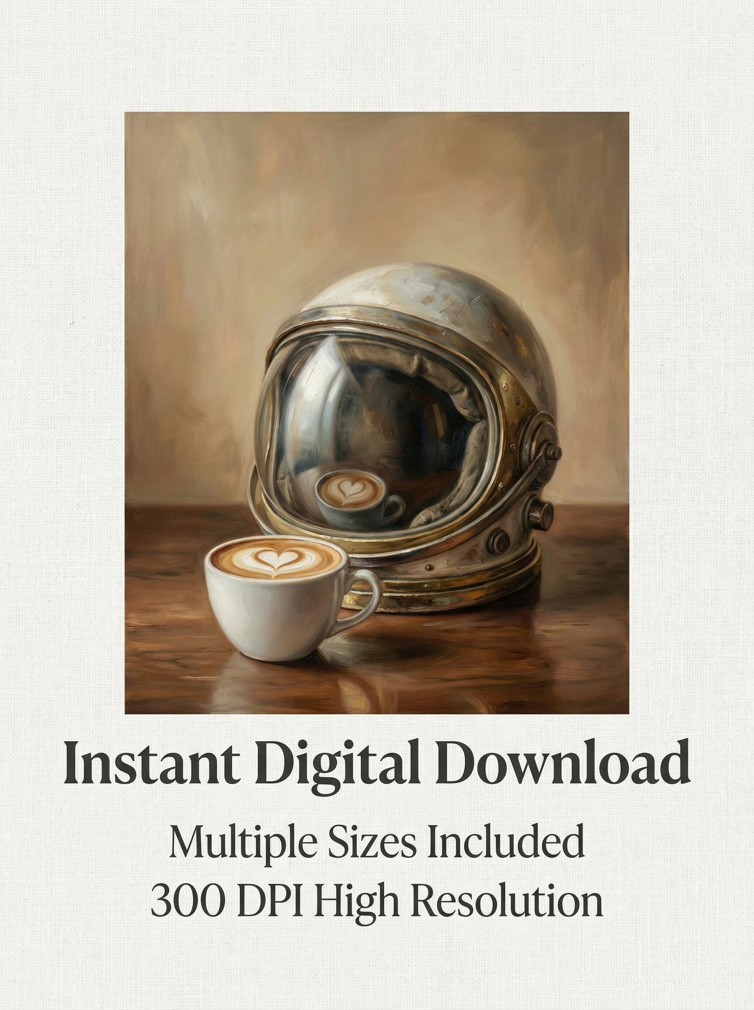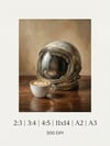 Vintage Astronaut Helmet & Latte Art Oil Painting Printable