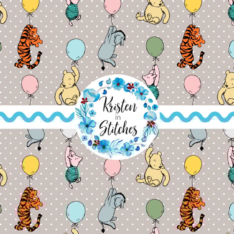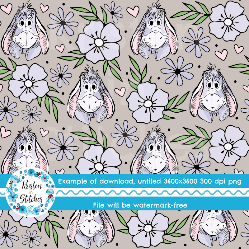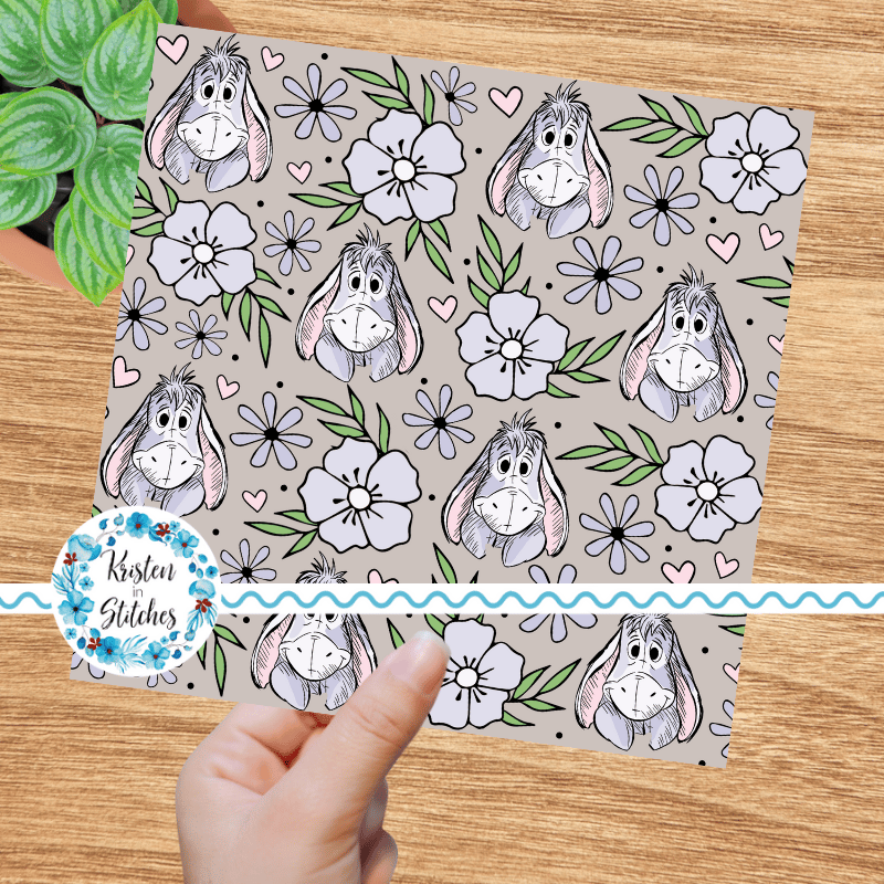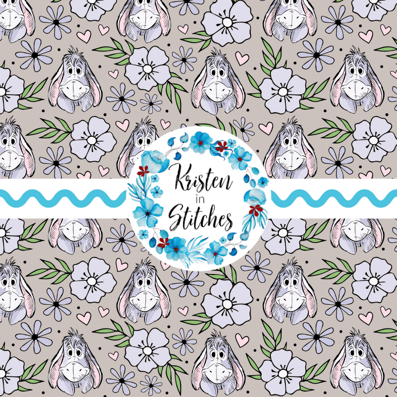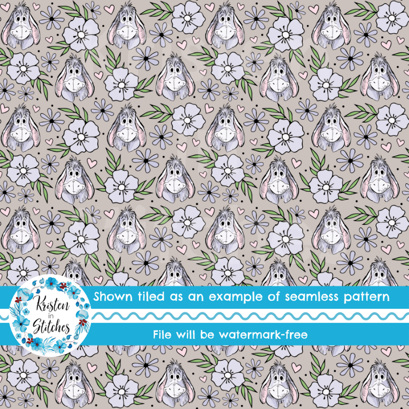 Eeyore Floral Seamless Pattern, Classic Winnie the Pooh Nursery, Taupe