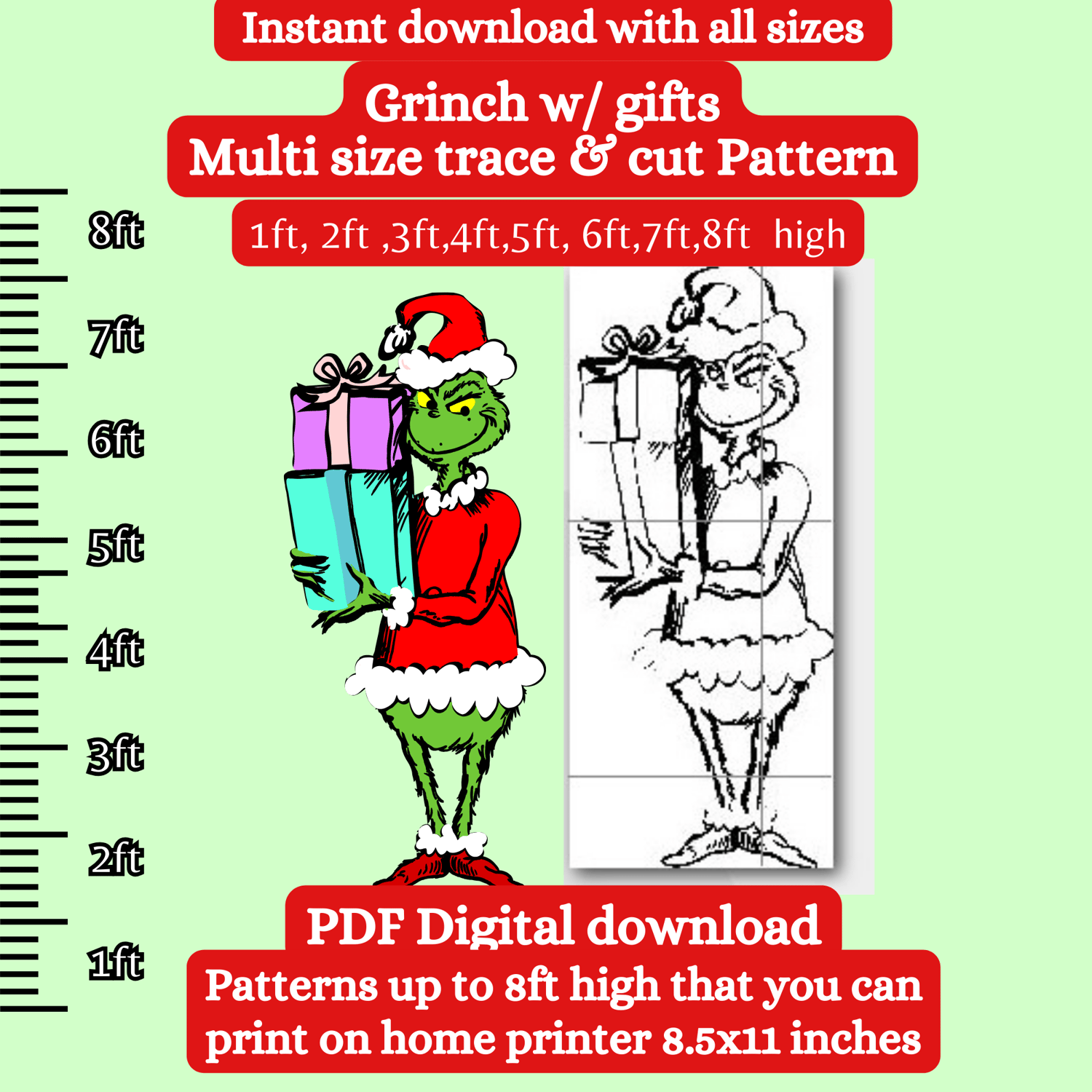 Whoville santa holding gifts, mean one ,traceable pattern, 1ft 2ft 3ft 4ft, 5ft, 6ft 7ft 8ft, silhouette Template stencil pattern, Christmas village scene, print trace & cut pattern, Xmas yard art, trace and create Décor, D