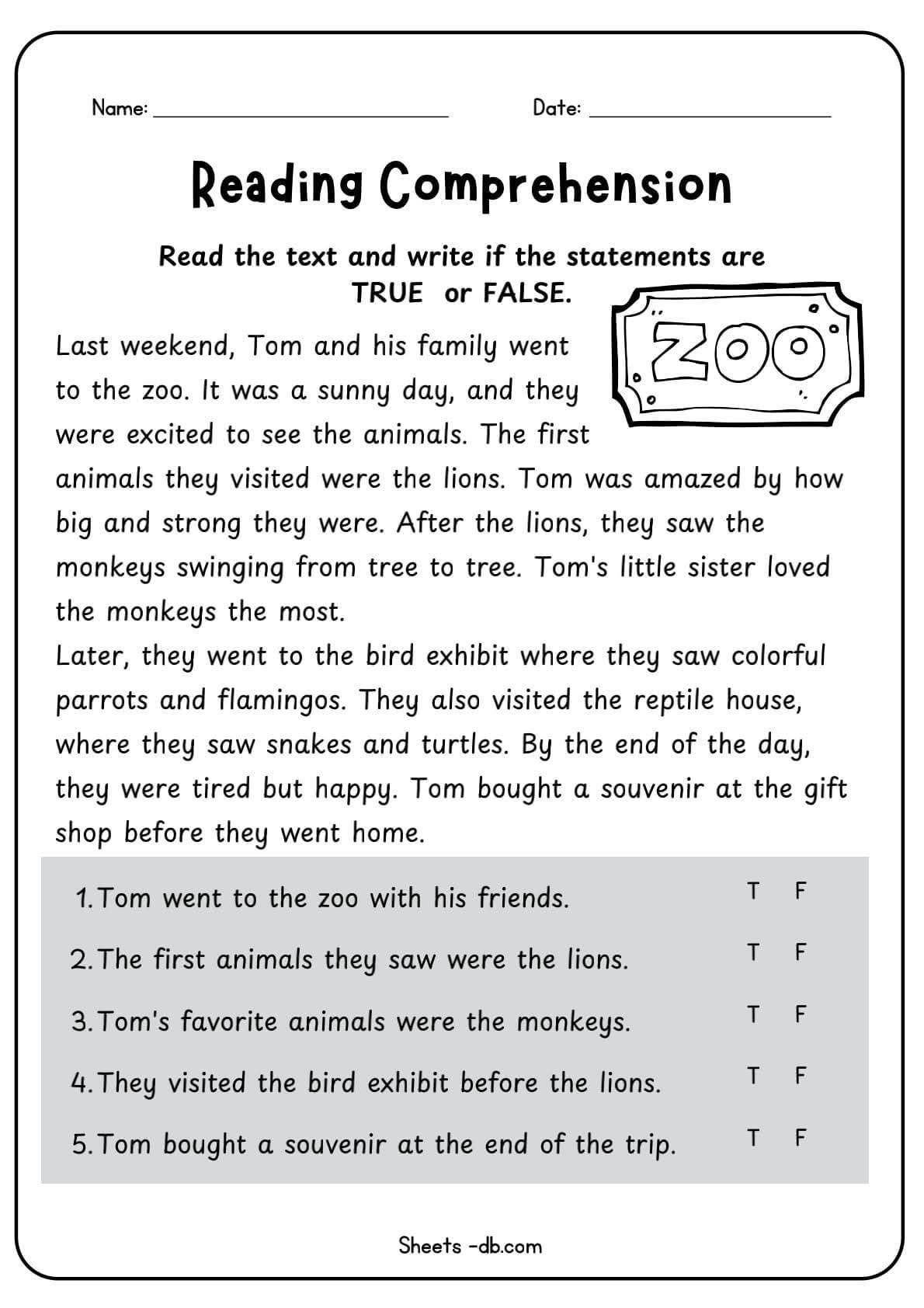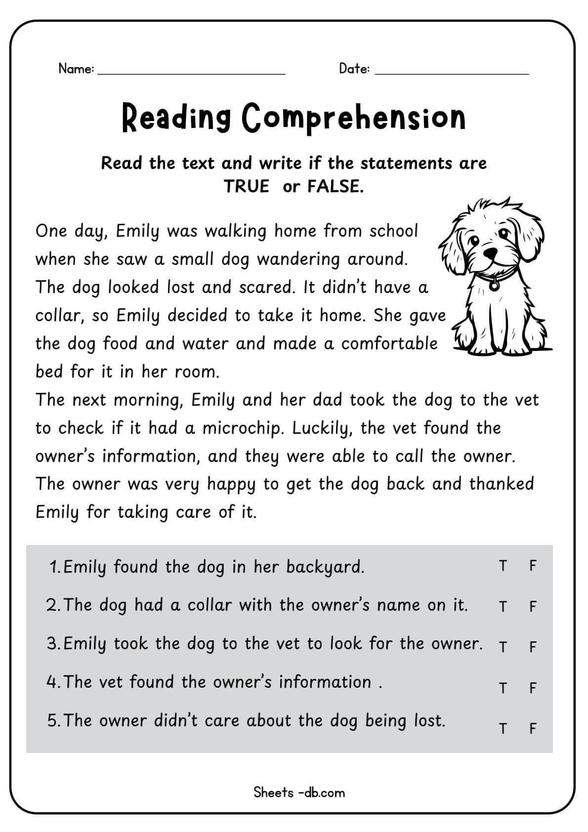 This resource includes multiple short stories with True/False questions, perfect for helping students practice reading, understanding details, and improving comprehension skills.