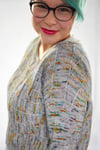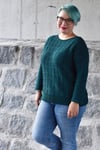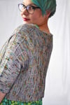 The sweater is knit sideways from the center out with a seamless modular construction and #sizeinclusive Mix & Match sizing: You can chose and combine any of the 7 circumferences (1-7), 7 lengths (a-g), 3 neckline options (S-L) and even customize the sleeve circumference to create your perfect sweater fit.