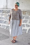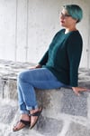 - long-sleeved/semi-solid version: La Bien Aimée Merino Yak (70% Merino, 20% Yak, 10% Nylon, 400 m / 437 yds per 100 g) in colorway Chrysocolla in size 3eM with 25 cm/10“ ease