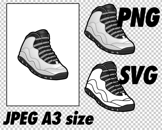 Air Jordan 10 Steel with Toe Cap JPEG PNG SVG digital sneaker art