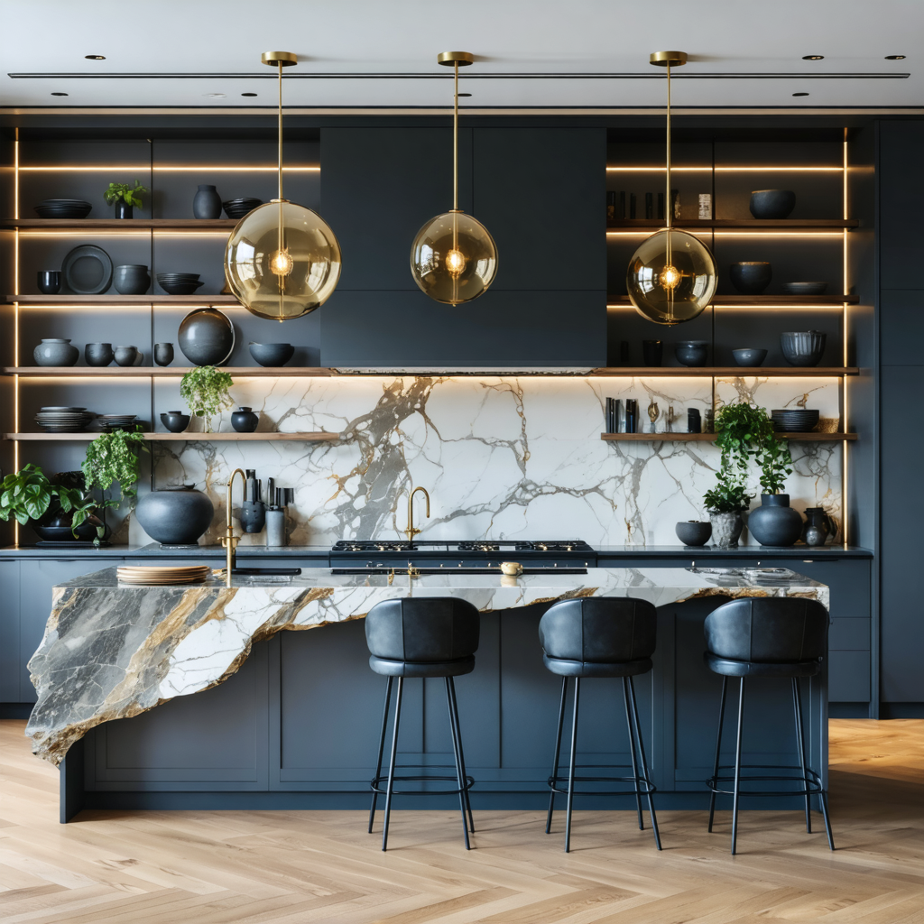 Create ultra-stylish, high-end kitchen interiors with this premium Midjourney prompt designed for sleek contemporary spaces. Generate hyper-realistic visuals featuring slate blue cabinetry, marble waterfall islands, brass accents, and cinematic lighting with editorial-level composition. Perfect for interior designers, real estate marketing, and luxury portfolio presentations. This product is a ready-to-use AI prompt, not a finished image—giving you full creative control to instantly produce professional, magazine-quality interior renders with exceptional realism and detail.