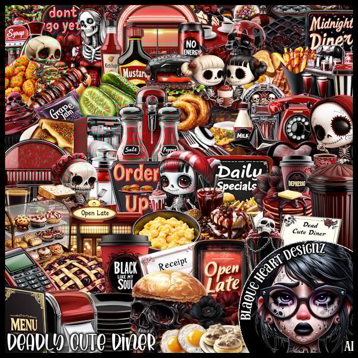Perfect for dark-cute foodie tags and bold gothic edits.