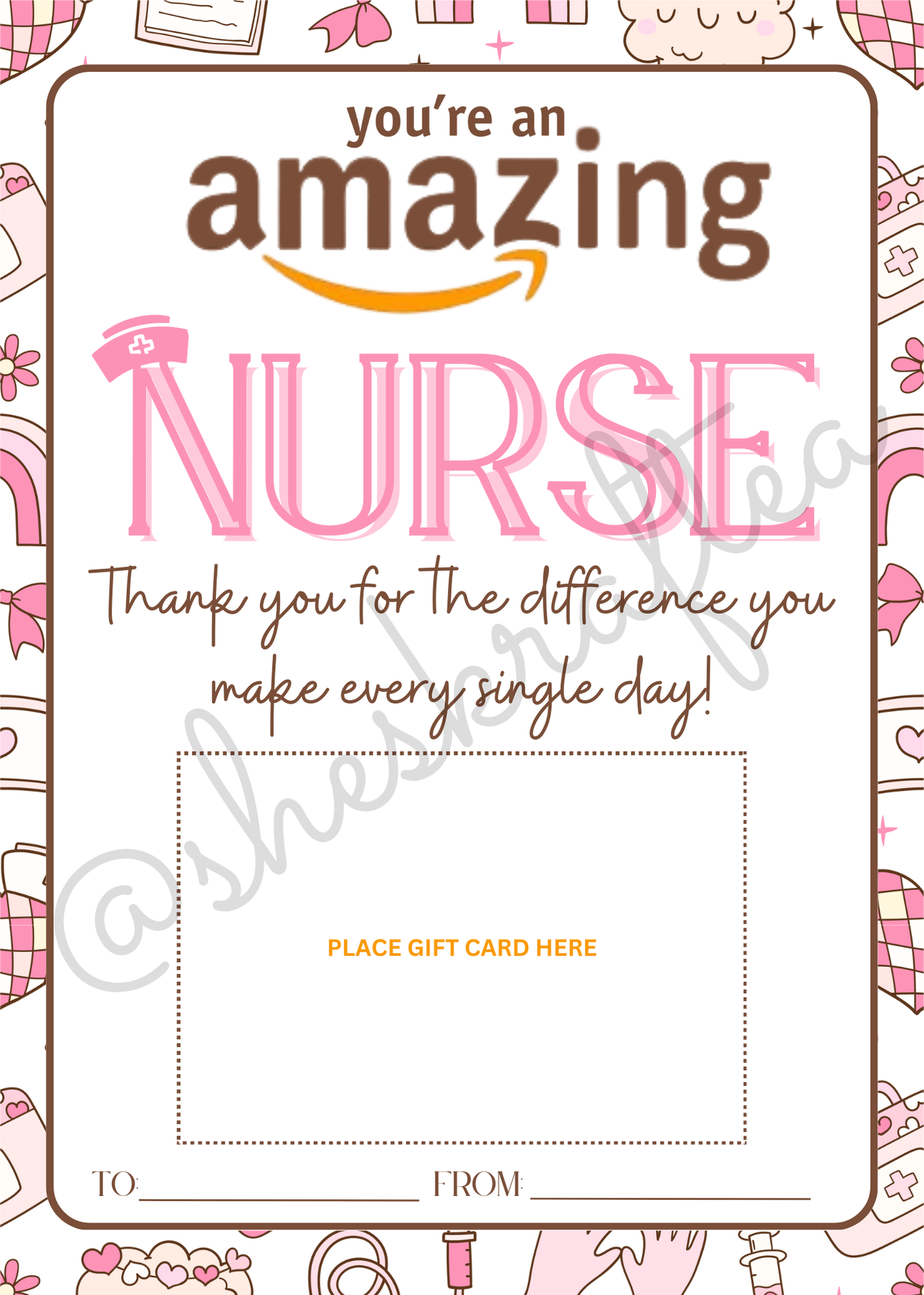 Celebrate the amazing nurses in your life with a thoughtful and easy DIY gift! This free 5x7” printable gift card holder is perfect for Nurse Appreciation Week — just print, cut, and attach an Amazon gift card for a simple yet meaningful gesture.