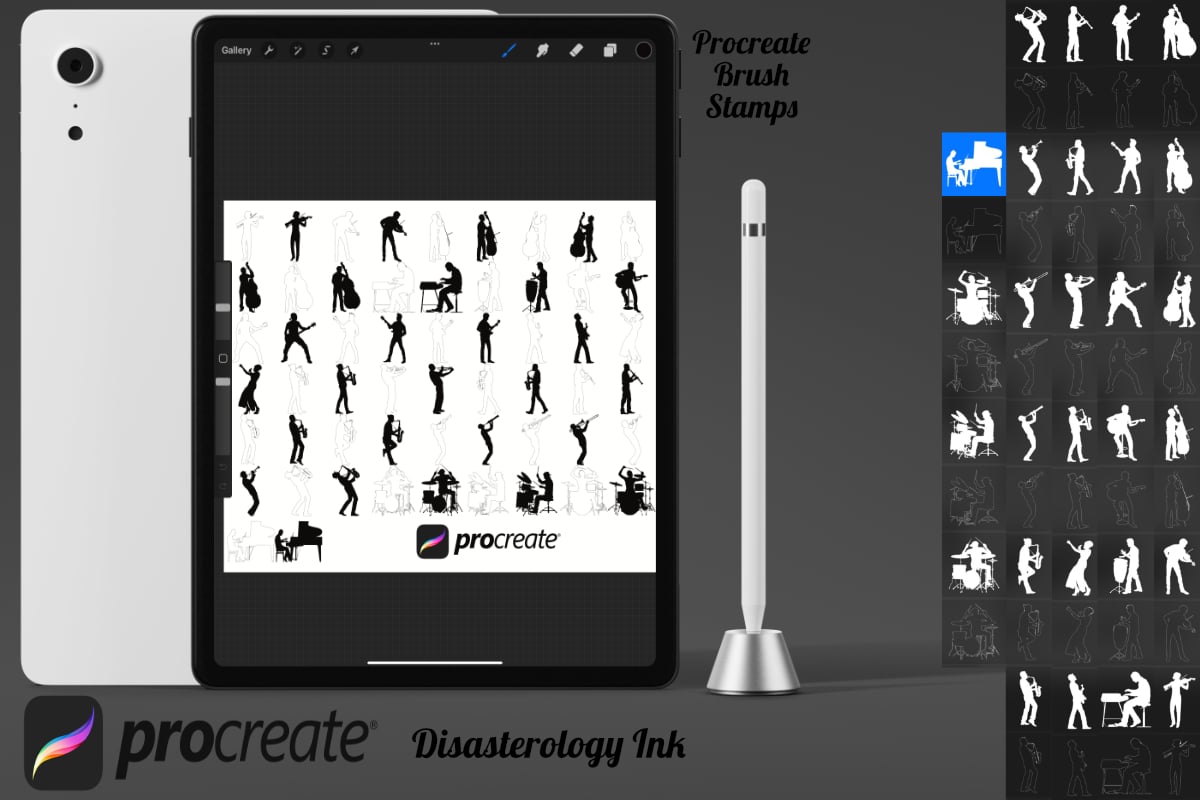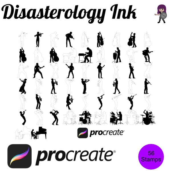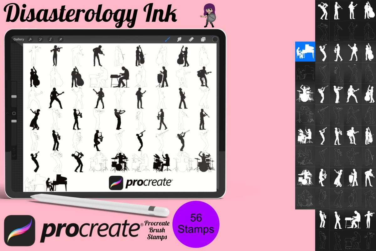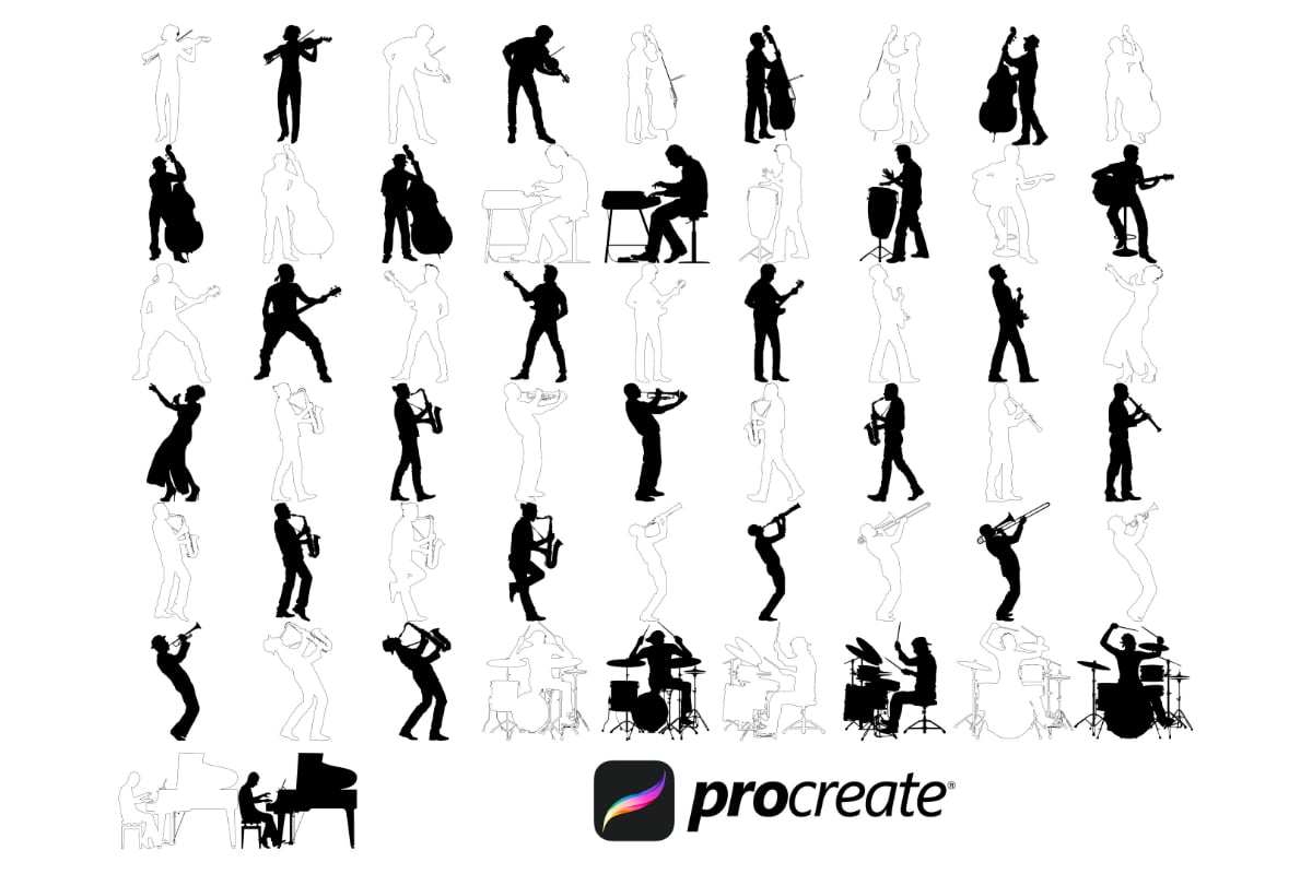 Musical Musician Figure Poses Set 1 Procreate Brush Stamps, 56 Poses