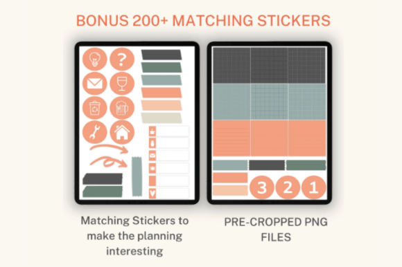 Includes 200+ pre-cropped PNG stickers to enhance your digital planning experience.