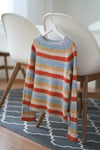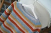 This simple striped sweater is a perfect stashbuster. It’s worked from top down using fingering weight yarn in five colors. The imagination is the limit, you can make it bright and happy like the sample or maybe one in subtle, earthy tones? A monochrome version would be great also!
