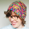 A very loose gauge can work well with this hat, especially if your yarn is tightly plied like the variegated sample, for a super stretchy, comfy fit.