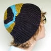 Using more than one yarn: This hat works well with stripes throughout, switching yarns near the beginning of each right-side row, or with color blocks made by using a new solid color for each section. The pattern has notes for either kind of colorwork. Stripes will make lines going in different directions, with fun movement from section to section. For color blocks you could use five colors, a new one for each section, or fewer (just two colors will work fine), switching between colors from section to section.