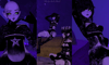 Crown, piercings, hood, socks, tails, ring, top, bralette, shorts, bandage, thigh garter, shikigami paper follower, body and head tats, spear, lantern, mute board, neck spikes, clothing textures: Yinothy
