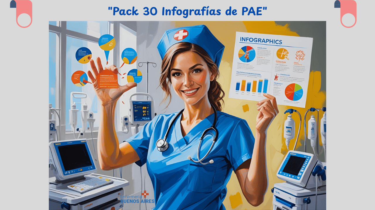 Te presento este pack exclusivo con más de 30 infografías de Planes de Atención de Enfermería (PAE). Visuales, organizadas por dominios, diagnósticos, NOC y NIC, pensadas para aplicar en la práctica real, no solo para aprobar.