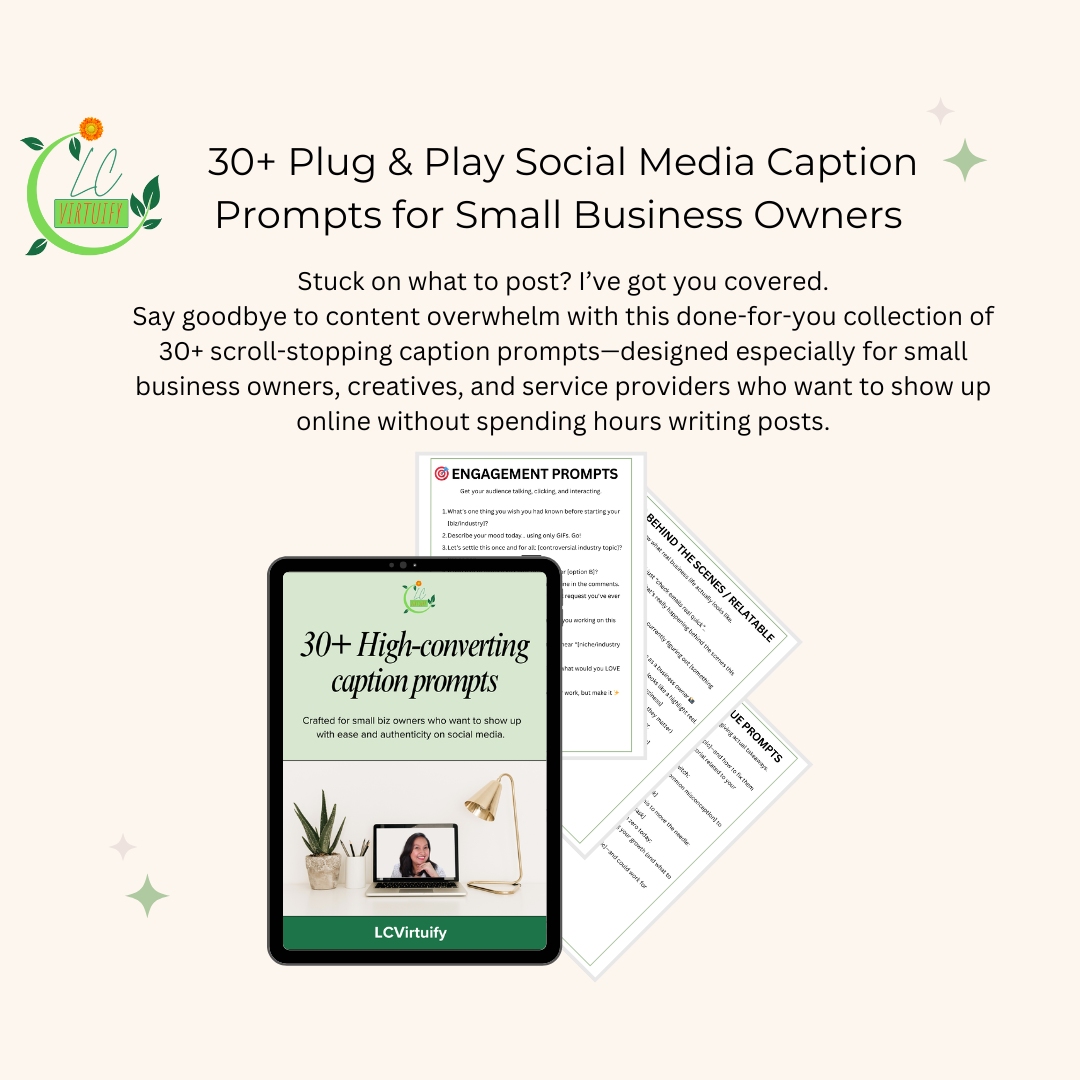 30+ Plug & Play Social Media Caption Prompts for Small Business Owners | Instant Content Ideas for Instagram & More